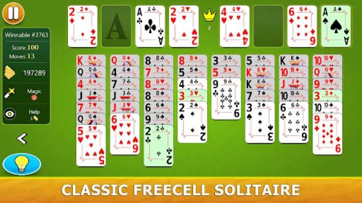 FreeCell Solitaire - Игра на карти е върховната предизвикваща ума игра на пасианс. Насладете се на модерен дизайн, 4 вълнуващи режима и безброй опции за персонализация. Възползвайте се от интуитивна система за помощ с полезни съвети и указания.