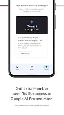 Когато нуждите ви от пространство нарастват, надградете до членство в Google One, за да отключите още повече предимства. Независимо дали става въпрос за необятни колекции от спомени, мащабни лични проекти или обемни дигитални файлове, Google One предлага гъвкави абонаментни планове, които се адаптират към вашите изисквания. Изберете оптималния план и се насладете на изобилно хранилище, което расте с вас, осигурявайки, че никога няма да ви липсва място за съхранение на всичко, което е важно.