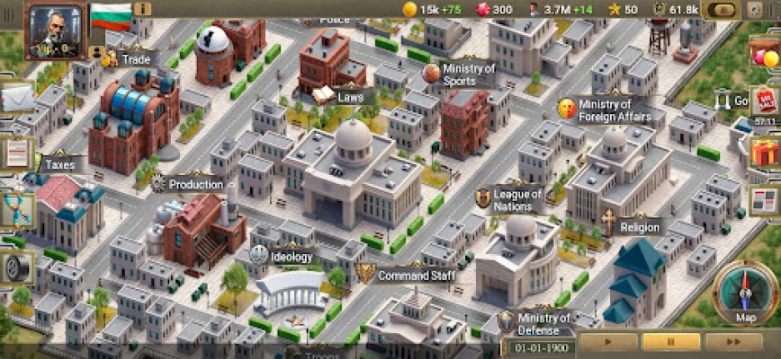 Потопете се в едно завладяващо стратегическо приключение, където всяко ваше решение оформя съдбата на една нация. В тази грандиозна игра вие не просто ръководите – вие изграждате. От скромни начала до глобална свръхсила, вие сте архитектът на държавността, командирът на въоръжените сили и движещата сила зад процъфтяваща икономика. Пригответе се да се изправите пред безброй предизвикателства, да вземате критични решения и да оставите своя отпечатък в историята на света.