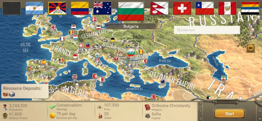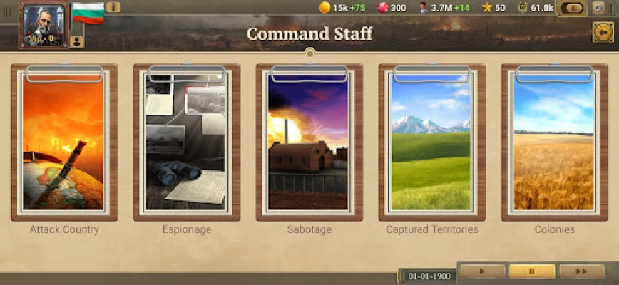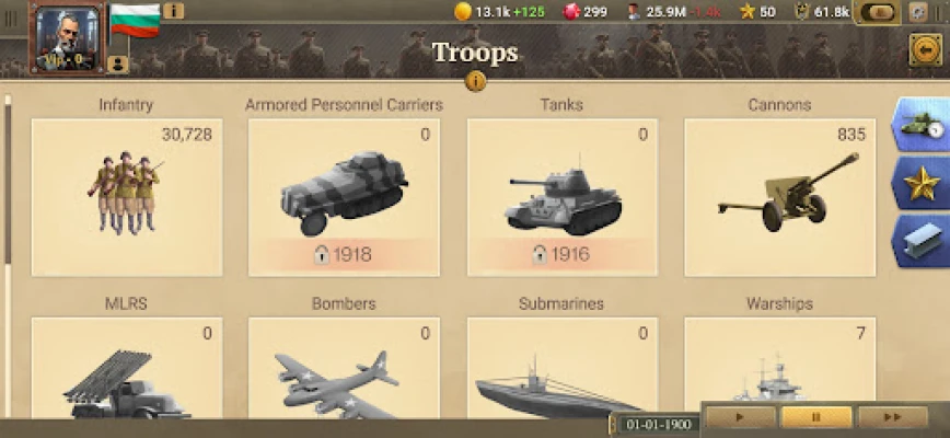 Създайте непобедима армия, като инвестирате в непрекъснати учения, изграждане на модерни съоръжения и стратегическо преразпределение на войските си. Владейте природните богатства, добивайки жизненоважни ресурси като петрол, желязо и олово, за да захраните военната си машина и да осигурите икономически просперитет. Разширете влиянието си чрез колонизиране на неизследвани територии, утвърждавайки присъствието си на световната сцена. Умелото водене на дипломация е от ключово значение – сключвайте пактове за ненападение, изгодни търговски споразумения и създавайте посолства, за да изградите мрежа от съюзници или да изолирате опонентите си.