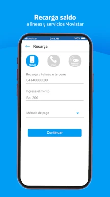 Независимо дали сте на предплатен план или с абонамент, Mi Movistar Venezuela ви дава пълен контрол. Допълвайте баланса на вашата линия или на близките ви лесно и сигурно, използвайки удобни методи за плащане като Pago móvil C2P, дебитна карта Mercantil или вашата кредитна карта. Плащането на месечните ви сметки е също толкова лесно – прегледайте дължимите суми и направете плащане с вашата кредитна карта (Visa, Master, Todoticket integral, Valeven global) или мобилно плащане. Освен това, избирайте идеалните пакети за данни, минути и SMS, съобразени с вашите нужди, само с няколко докосвания.