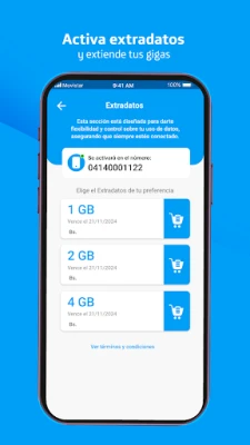 Никога не оставайте без връзка! С Mi Movistar Venezuela можете да следите потреблението на данни в реално време и да активирате допълнителни мегабайти чрез опцията „Extradatos", или да изберете от набор индивидуални интернет пакети, напълно съобразени с вашите нужди. А когато имате нужда от помощ, нашият Център за поддръжка е на ваше разположение – свържете се с нас чрез чат или X (познат преди като Twitter) за бързо и ефективно обслужване. Можете също така лесно да прехвърляте баланс, където и да се намирате, директно от приложението.
